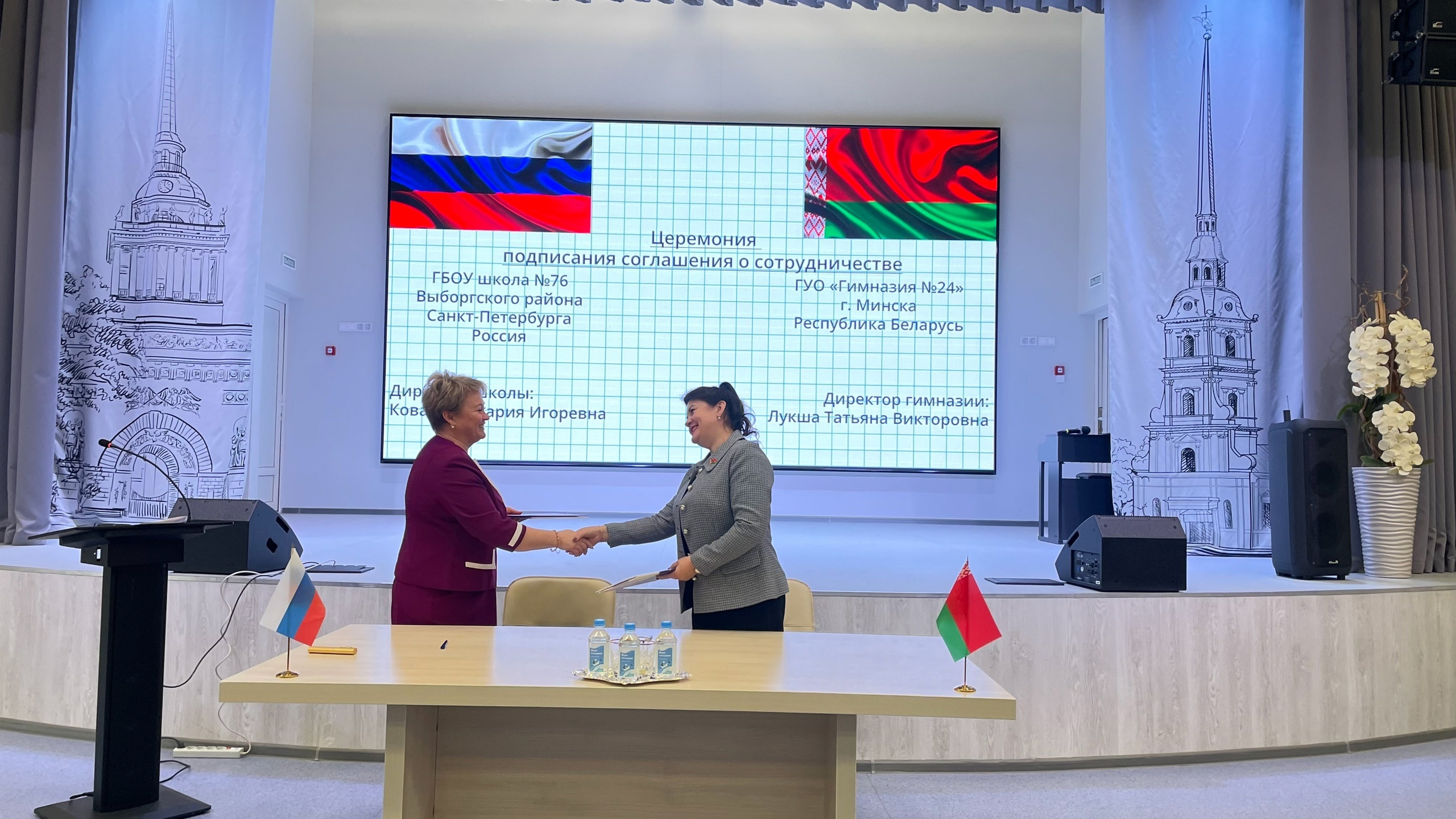 Важным событием стало подписание соглашения о сотрудничестве в сфере образования между ГБОУ СОШ № 76 Санкт-Петербурга и ГУО гимназией № 24 Минска.